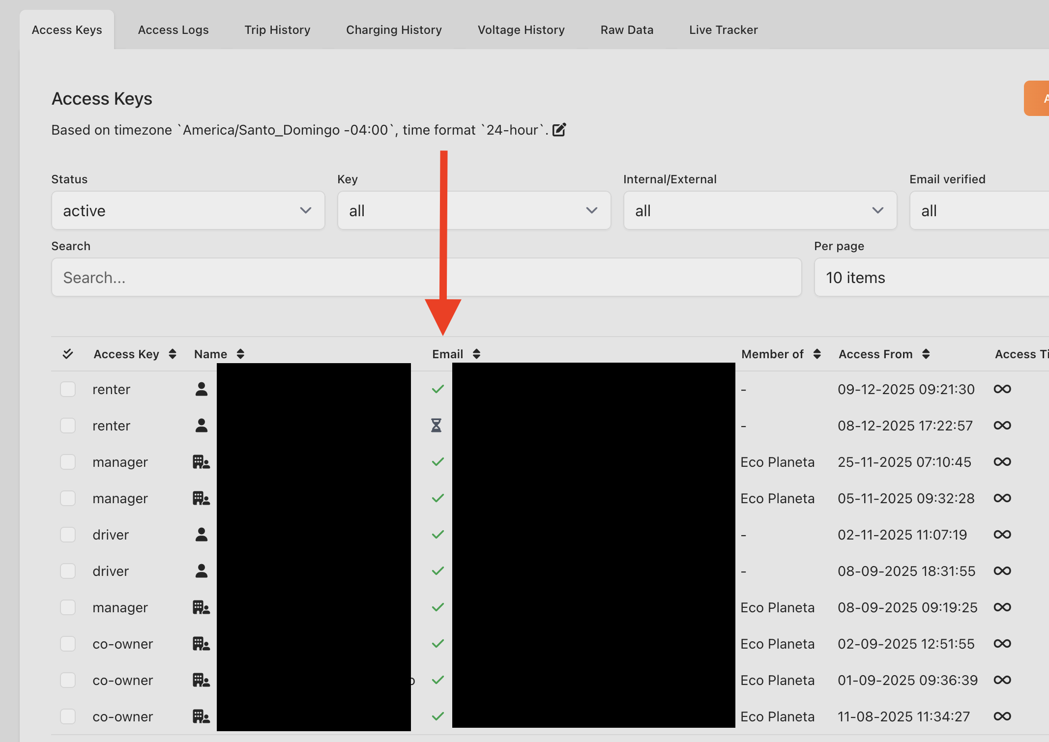 If you are the one sharing a digital key with a new Eco Planeta IQ user, you can see if the account is already verified.
